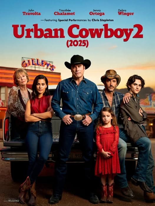 Social media has recently been abuzz with posts claiming that director Taylor Sheridan is bringing the honky-tonk classic Urban Cowboy back to life in a sequel titled Urban Cowboy 2: Legacy of Gilley’s. According to the viral description, the film would star Zahn McClarnon, Timothée Chalamet, Jenna Ortega, with original cast members John Travolta and Debra Winger, plus a special musical performance by Chris Stapleton.